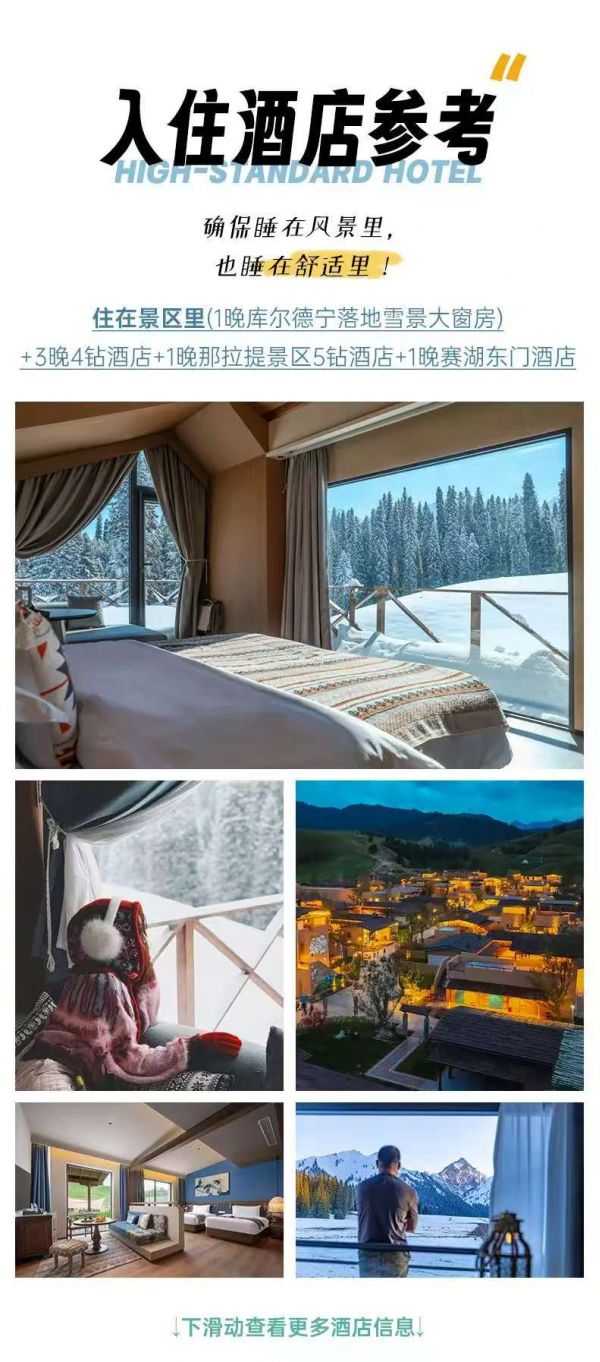 情況一:若正覘對鉦嬋鍋上山的車輛到達布爾津檢査站時,交警告知山上下大雪清雪封路,若明確通行時間,我們將在檢查站排隊等候;若明確告知當日無法通行,行程將調(diào)整至布爾津酒店安排住宿,行程天數(shù)及費用不變。
