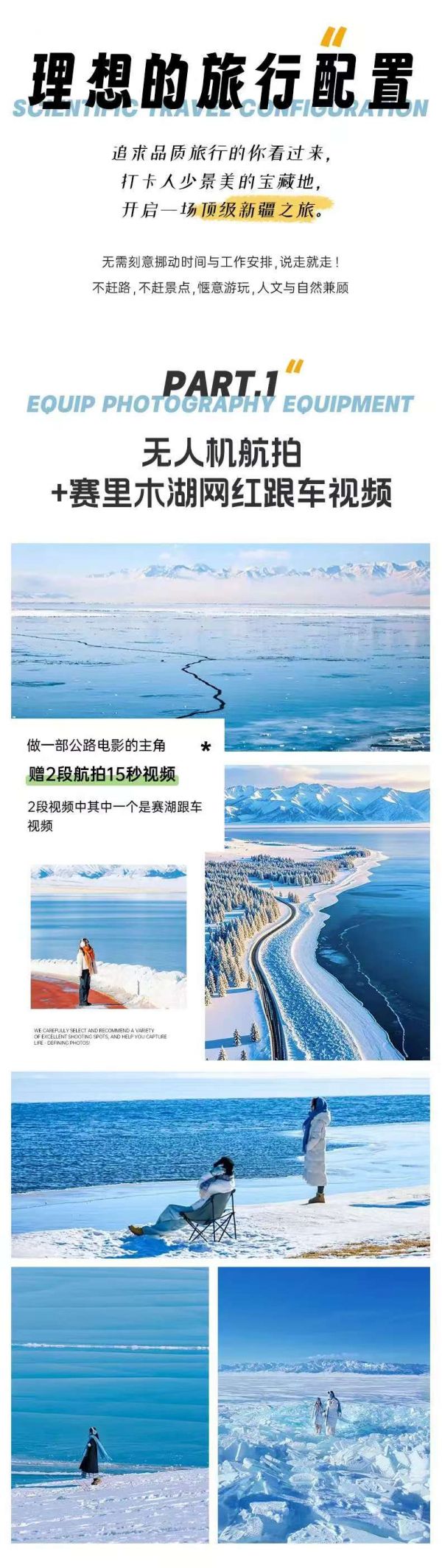 贈(zèng)送無(wú)人機(jī)2段15秒視頻(含賽里木湖跟車(chē)視頻),(贈(zèng)送項(xiàng)目不去不退,僅限天氣情況良好安排;如遇師傅沒(méi)有拍攝2段15秒視頻,退50元/人);