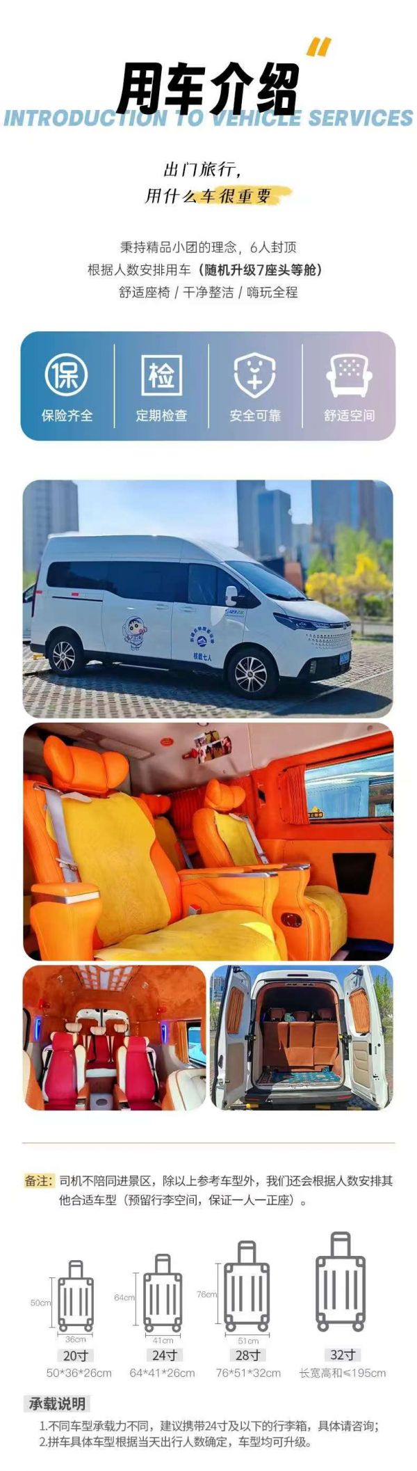 備注:車(chē)型承載力有限,攜帶行李為24寸或以下行李箱。