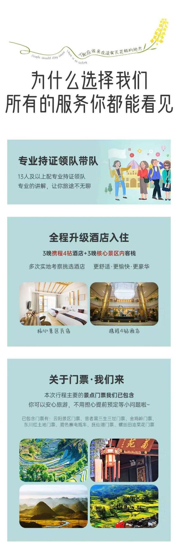 包含元陽(yáng)景區(qū)門(mén)票(元陽(yáng)現(xiàn)實(shí)行單點(diǎn)單獨(dú)檢票制,我們購(gòu)買(mǎi)為單次門(mén)票,不能重復(fù)進(jìn)入景區(qū),如果希望多次進(jìn)入需另自費(fèi)購(gòu)門(mén)票)、普者黑三生三世景區(qū)門(mén)票、金雞嶺門(mén)票、蒙自電瓶車(chē)費(fèi)、撫仙湖門(mén)票、螺絲田油菜花時(shí)節(jié)性門(mén)票。
