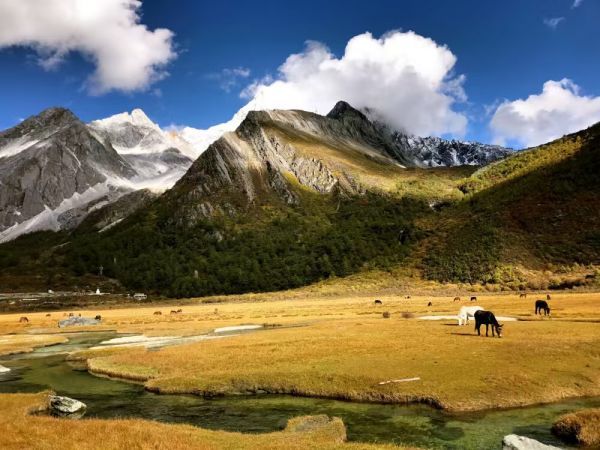 從新都橋出發(fā),可選擇前往甲根壩或姑弄村。早餐后從新都橋出發(fā),前往甲根壩或姑弄村。甲根壩是一個充滿濃郁藏式風(fēng)情的地方,這里有廣袤的草原、清澈的溪流和錯落有致的藏式民居。您可以在這里欣賞到美麗的田園風(fēng)光,感受藏族人民的生活方式和文化傳統(tǒng)。姑弄村則是一個寧靜的小村莊,抬頭可見亞拉雪山巍峨聳立,周圍的自然風(fēng)光十分優(yōu)美。您可以在村里漫步,與當(dāng)?shù)鼐用窠涣鳎私馑麄兊纳盍?xí)俗。