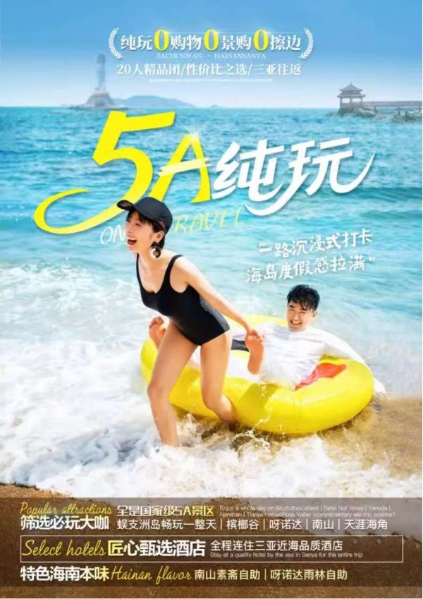 ☆2、精選景點(diǎn):5A蜈支洲一整天/5A檳榔谷/5A呀諾達(dá)/5A南山/5A天涯海角;