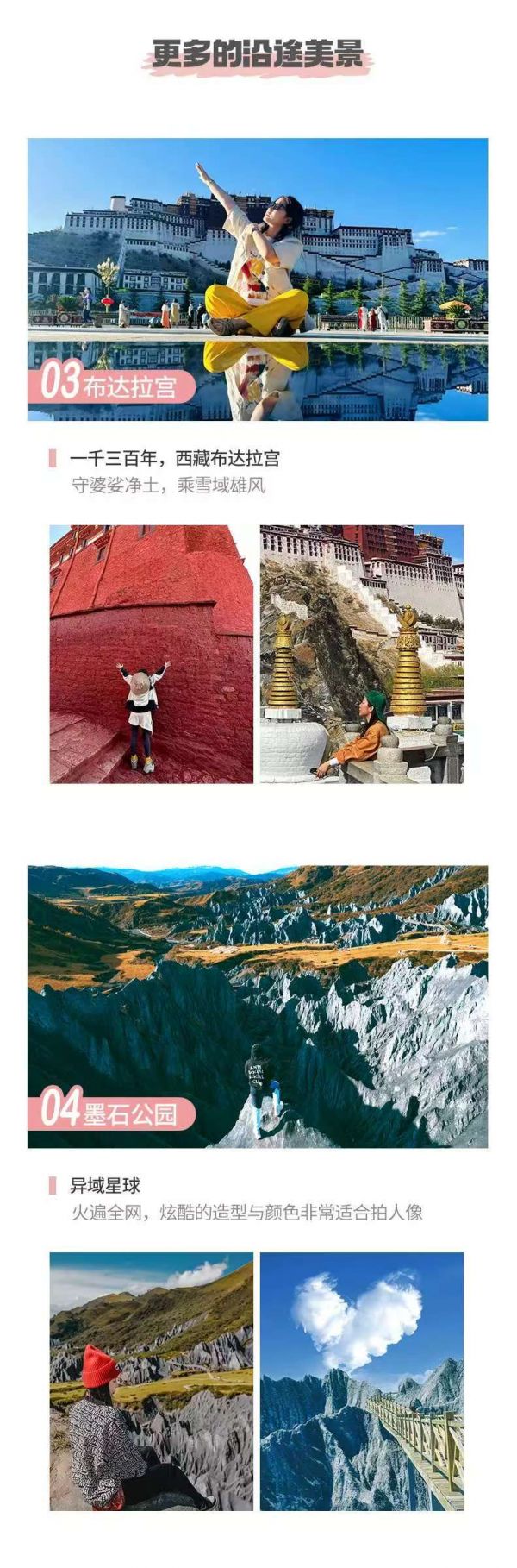 包含四姑娘山雙橋溝門票、理塘套票、甲居藏寨門票、米堆冰川門票、雅魯藏布大峽谷門票、墨石公園門票、嘎拉桃花村門票、布達(dá)拉宮門票(如持有優(yōu)惠證件者,請?jiān)趫竺臅r候告知,我們會在行程結(jié)束后退還相應(yīng)差價)
