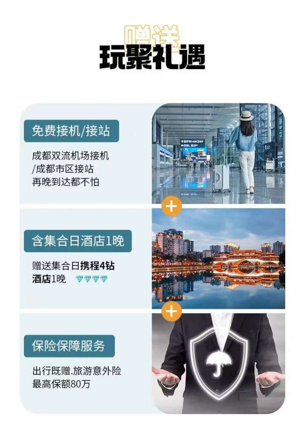 返回成都統(tǒng)一散團(由車上游客協(xié)商一致送至統(tǒng)一散團點,若協(xié)商不成則由司機送至三環(huán)內(nèi)就近地鐵站散團),結(jié)束本次愉快的旅行。由于川西地區(qū)路況復(fù)雜,有可能因為堵車而發(fā)生延誤,請大家盡量預(yù)定第二天返程的航班或車次?;氐搅某菧嘏募?。