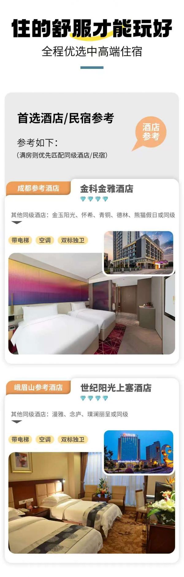 住宿:成都集合日攜程4鉆酒店雙人標(biāo)間