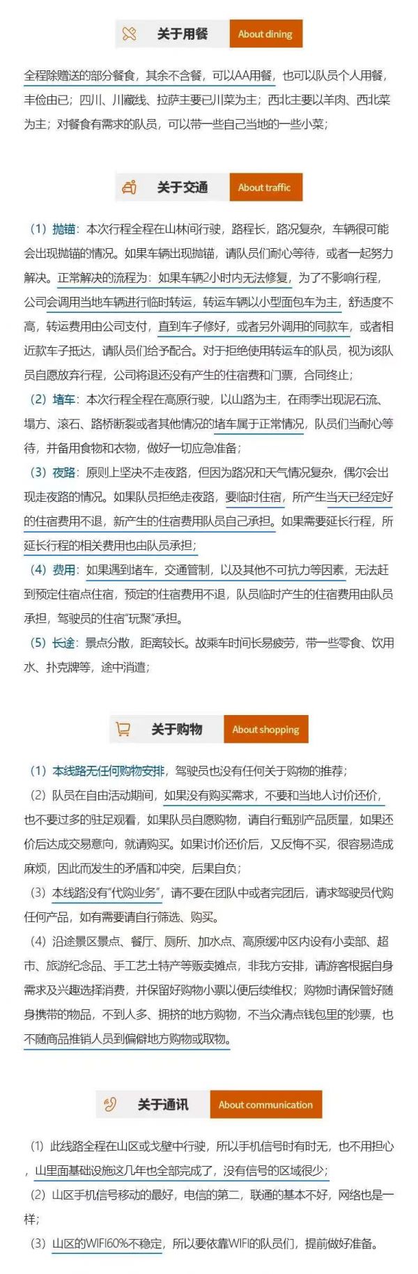 3. 建議隊員們在集合日抵達(dá)成都后,可在市區(qū)采購一些旅行用品,如零食、佐餐小菜、藥品等;