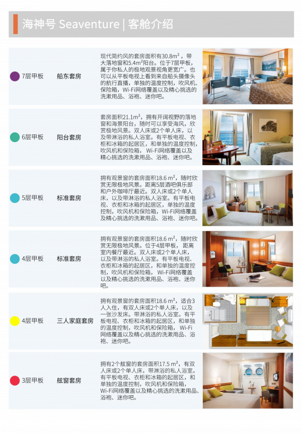 √郵輪設備設施和服務及極地目的地的介紹來源于參考材料,如果與實際有出入那么不視作旅行社違規(guī)。