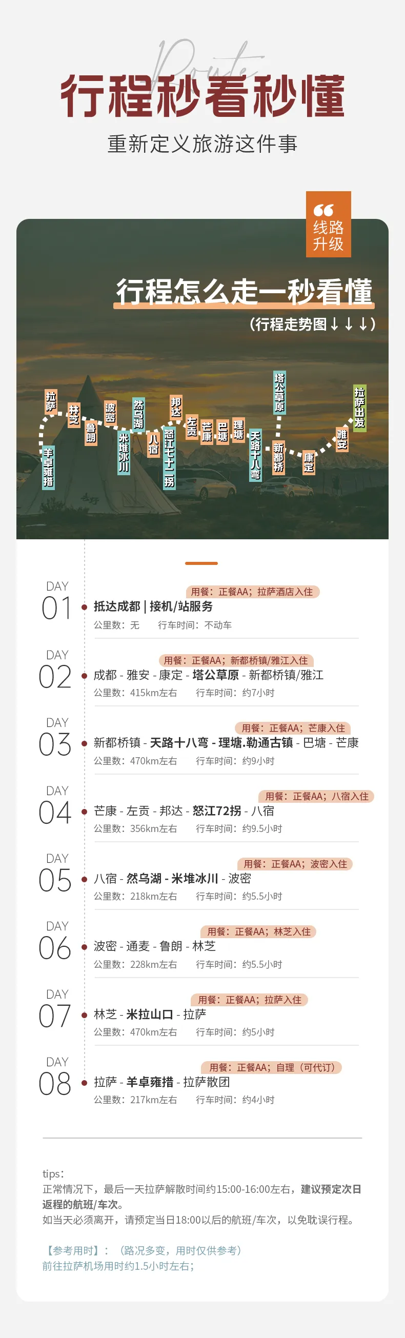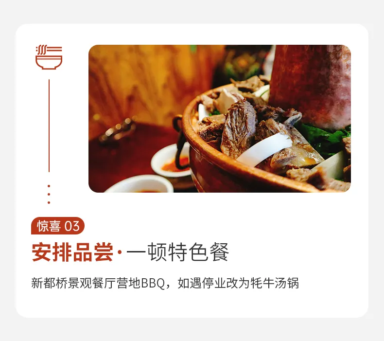 ① 用餐:全程7頓早餐+1頓特色餐(新都橋營地BBQ,停業(yè)改為牦牛湯鍋);