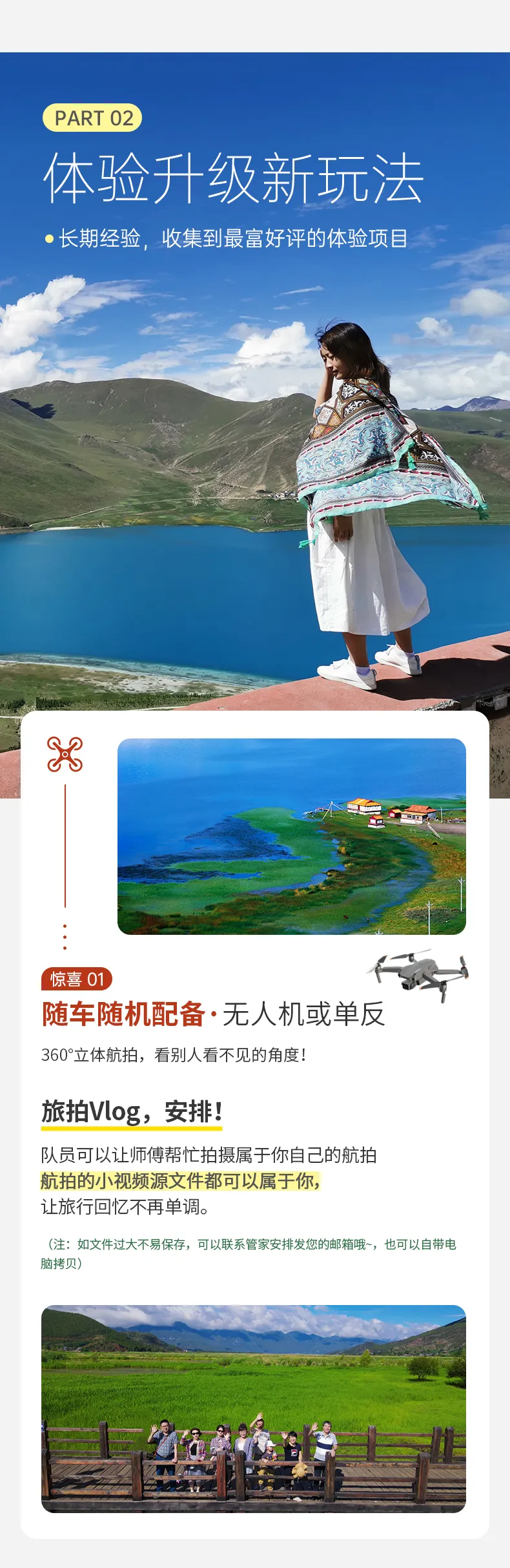 *隨車隨機配備無人機或單反(不指定)電子源文件全送;(節(jié)假日不保證團團配備)