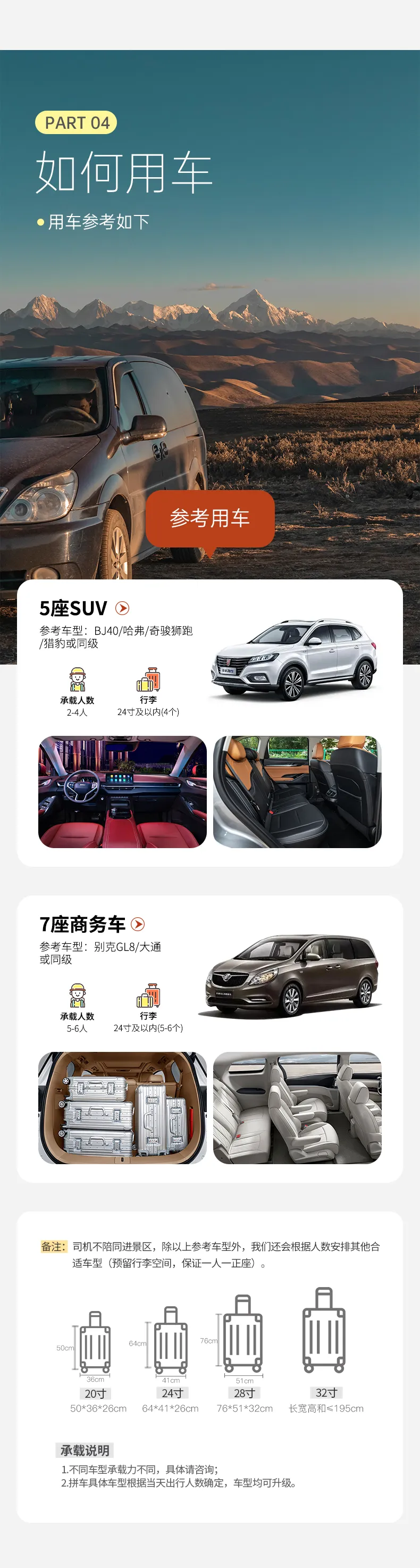 (3)本線路沒有“代購業(yè)務(wù)”,請不要在團隊中或者完團后,請求駕駛員代購任何產(chǎn)品,如有需要請自行篩選、購買。