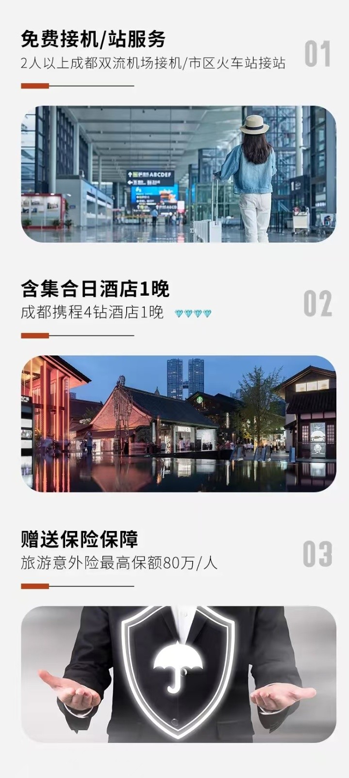 今天自行前往成都,抵達成都前后會有接機/站的師傅與您取得聯(lián)系接機/站的時間。