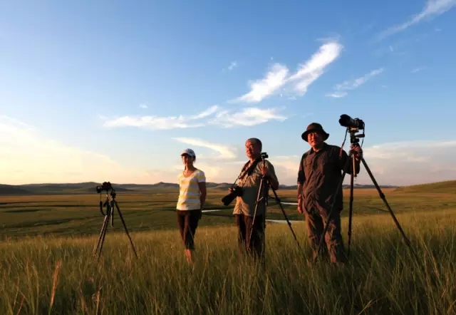 看到主人公的到來(lái),攝影師們興奮異常。老王駕輕就熟地跟攝影師們交涉起來(lái),向他們介紹大片拍攝最佳的時(shí)間和角度。