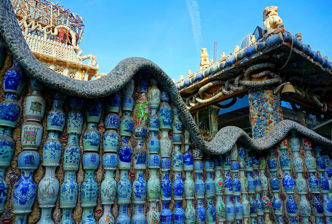 瓷房子(赤峰道):這是一座用數(shù)萬件古董瓷片裝修而成的法式洋樓,它的前身是歷經(jīng)百年的法式老洋樓,為房主張連志親自設(shè)計。