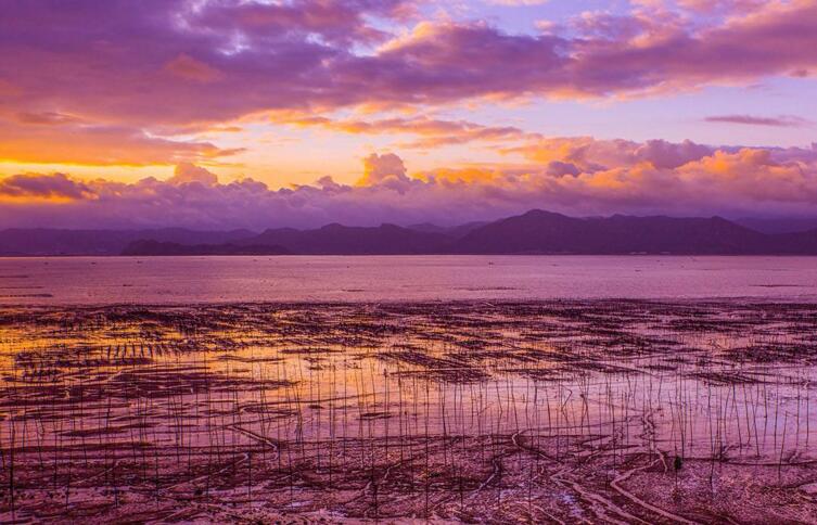 二、 潮汐不是拍攝霞浦唯一的因素,因為有些景點是不需要考慮潮汐的,譬如楊家溪,還有一些景點可能是漲潮時更好,譬如沙江、七都灘涂、鹽田灘涂、八尺門圍網在初一、十五前后去時間拍就不對。所以來霞浦拍攝不是說一次就能拍好、拍全,比如4月底至5、6月拍海帶,7、8月拍光影,拍臺風天里的云彩變化。從9月底到12月份拍紫菜。時節(jié)不一樣,可拍攝的內容場景不一樣。