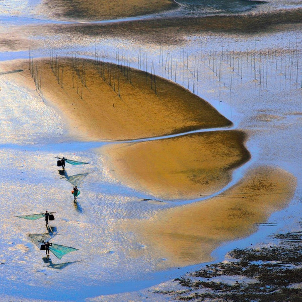 第一,有人有景,營造情景交融的場景。霞浦灘涂常年都有人在勞作,點綴在灘涂上的人遠處看去雖然是星星點點的,但是往往是畫龍點睛之筆。