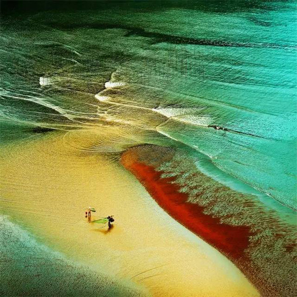 俗話說“站得高,看得遠”,拍攝灘涂就需要站在一個較高較遠的地方,用長焦捕捉海灘上的變化;長焦能更直觀的選擇并記錄灘涂中的無窮變化;還能夠壓縮空間 呈現一幅光影線條的抽象畫面,便 于廣大拍攝者的創(chuàng)作需求;因為長焦鏡頭都普遍比較重,而沿海附近風力也比較大,所以建議大家佩帶穩(wěn)固的三腳架進行拍攝。