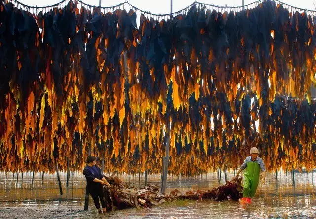 還有曬海帶,適合用中焦進(jìn)行近景拍攝,這樣能夠體現(xiàn)出曬海帶的過(guò)程,和曬海帶的壯觀景象,并可以在日落前運(yùn)用逆光拍攝,逆光可以表現(xiàn)出海帶的通透質(zhì)感。
