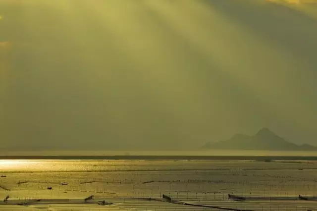 霞浦灘涂上以大面積的灰色為主,上面用于養(yǎng)殖的竹竿反光極為強(qiáng)烈,為了突出光影的效果,這些反光只能駕馭無(wú)法消除??梢钥紤]拍攝減少曝光量來(lái)進(jìn)行控制畫(huà)面的主體明度,達(dá)到增強(qiáng)光影效果的目的。選擇日落日出時(shí)段拍攝,化不利為有利。此時(shí)竹竿上的光比小,色溫暖,竹竿被夕陽(yáng)染成了金色,為灘涂風(fēng)光造景造勢(shì)。曝光控制值要講究,如果對(duì)高光部位正確曝光,舍去暗部的細(xì)節(jié),得考慮到灘涂的竹竿在遠(yuǎn)處成像后非常細(xì)小,即使使用相機(jī)的點(diǎn)測(cè)光也無(wú)法測(cè)出高光部分的亮度,那 么只能使用評(píng)價(jià)測(cè)光來(lái)測(cè)量。曝光補(bǔ)償上減少2檔曝光。