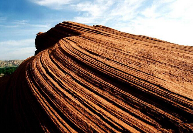 靖邊"波浪谷"這一名稱是來這里的攝影者給予的,它與亞利桑那州的波浪谷是有一定區(qū)別,亞利桑那州的波浪谷在紅色之間夾有白色線條,紅白相間;而靖邊的波浪谷則以紅色為主。