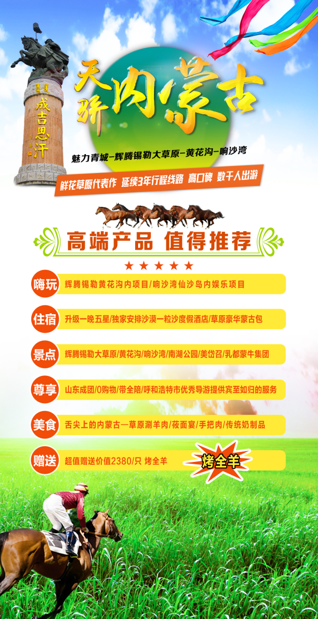 “舌尖上的內(nèi)蒙古”——烤全羊(2980元/只)、蒙古傳統(tǒng)奶制品、內(nèi)蒙涮羊肉、特色莜面宴、蒙古族手把肉。
