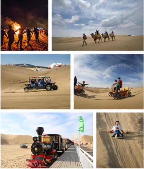 游覽【仙沙島】游玩沖浪車、騎駱駝、摩托車、卡丁車、高空滑索、軌道自行車、沙灘排球、沙灘足球等,盡享沙漠迪士尼帶來的無窮樂趣!(不玩不退;因天氣原因產(chǎn)生不可抗拒因素,不玩不退)