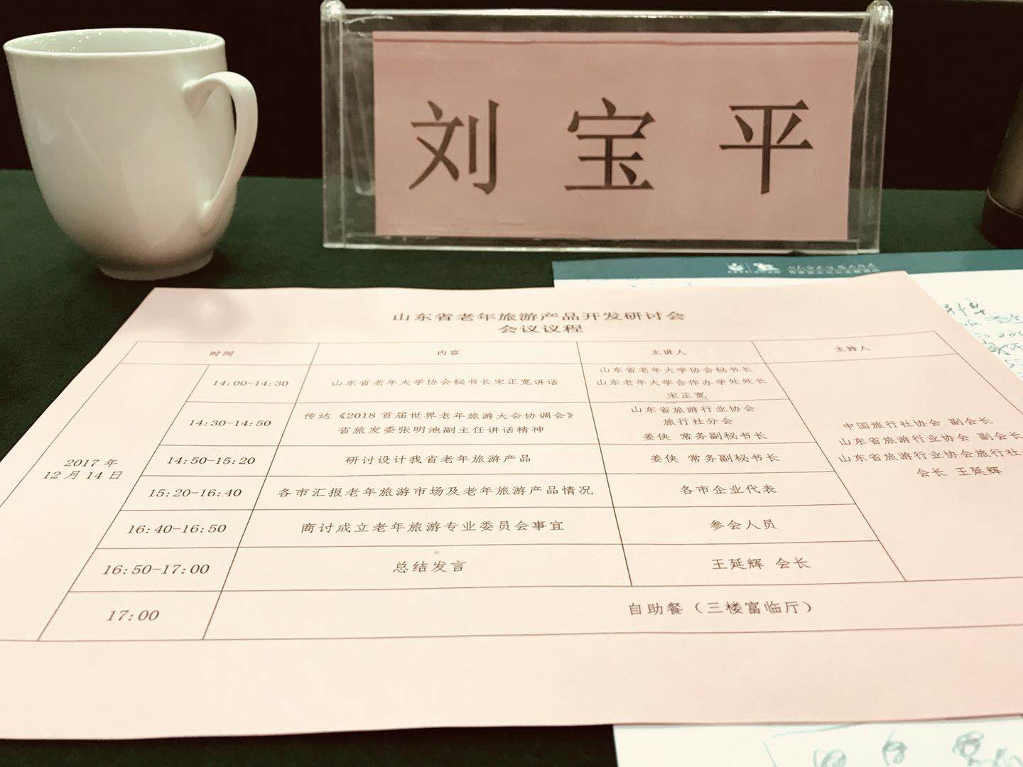12月14日,劉寶平受邀參加山東省旅游行業(yè)協(xié)會旅行社分會主辦的山東省老年旅游產(chǎn)品開發(fā)研討會,并就切實服務(wù)好老年人旅游提供建設(shè)性意見。