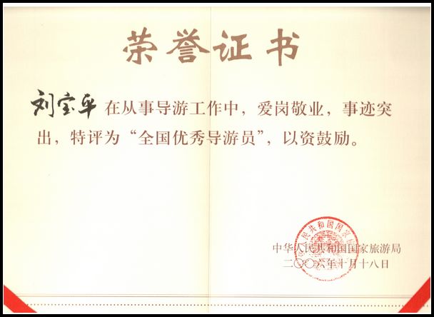我公司是聊城市唯一全國優(yōu)秀導(dǎo)游員單位。2006年公司董事長劉寶平獲得中華人民共和國國家旅游局授予的“全國優(yōu)秀導(dǎo)游員”稱號(hào),并受到吳儀副總理的親切接見。全國優(yōu)秀導(dǎo)游員帶隊(duì)管理,相信我們能為您提供最優(yōu)秀的旅游服務(wù); |