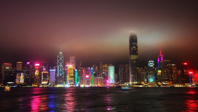 尖沙咀的夜晚,必打卡的夜景。這是還沒(méi)開始“幻彩詠香江”前正常的中環(huán)大樓們。