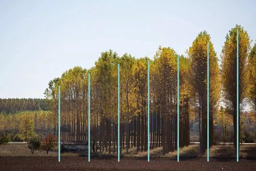 垂直式構(gòu)圖拍攝樹木,體現(xiàn)樹木的高大與挺拔。