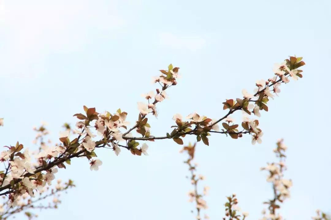 通過對角線構(gòu)圖,延伸的花枝自然填充整個(gè)畫面,顯得充實(shí)飽滿而又不失活潑。如果拍攝時(shí)有蝴蝶、小蟲子等小生命作為點(diǎn)綴,就更富有生機(jī)了。