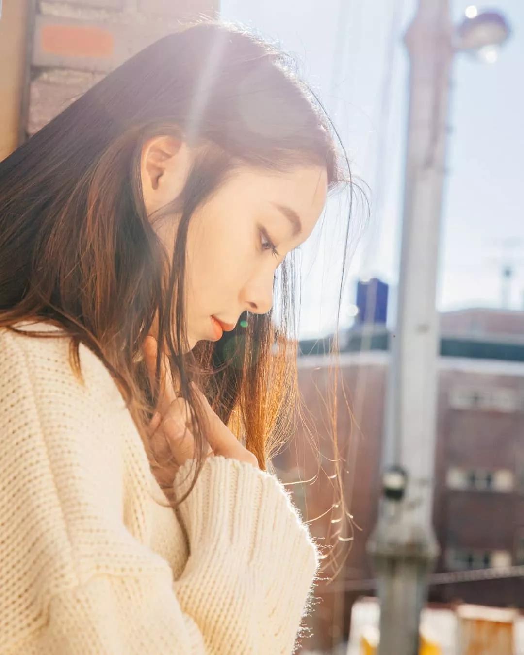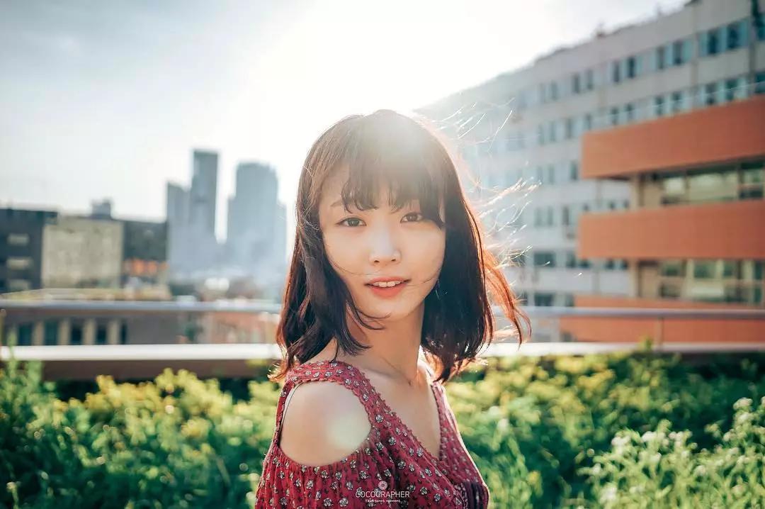 讓妹子的頭部遮擋身后太陽(yáng)的部分,或者模特用手遮擋部分光線,減弱逆光的強(qiáng)度,畫(huà)面更有朦朧的意境。