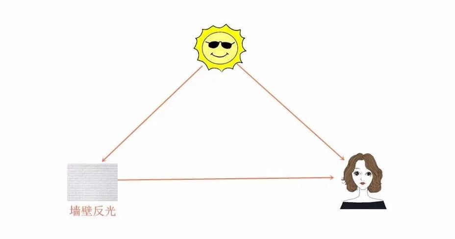 但多數(shù)人是沒(méi)有這些專業(yè)設(shè)備的,這時(shí)候,就可以利用周?chē)h(huán)境,來(lái)給模特臉部補(bǔ)光了,例如白色墻面的反光。