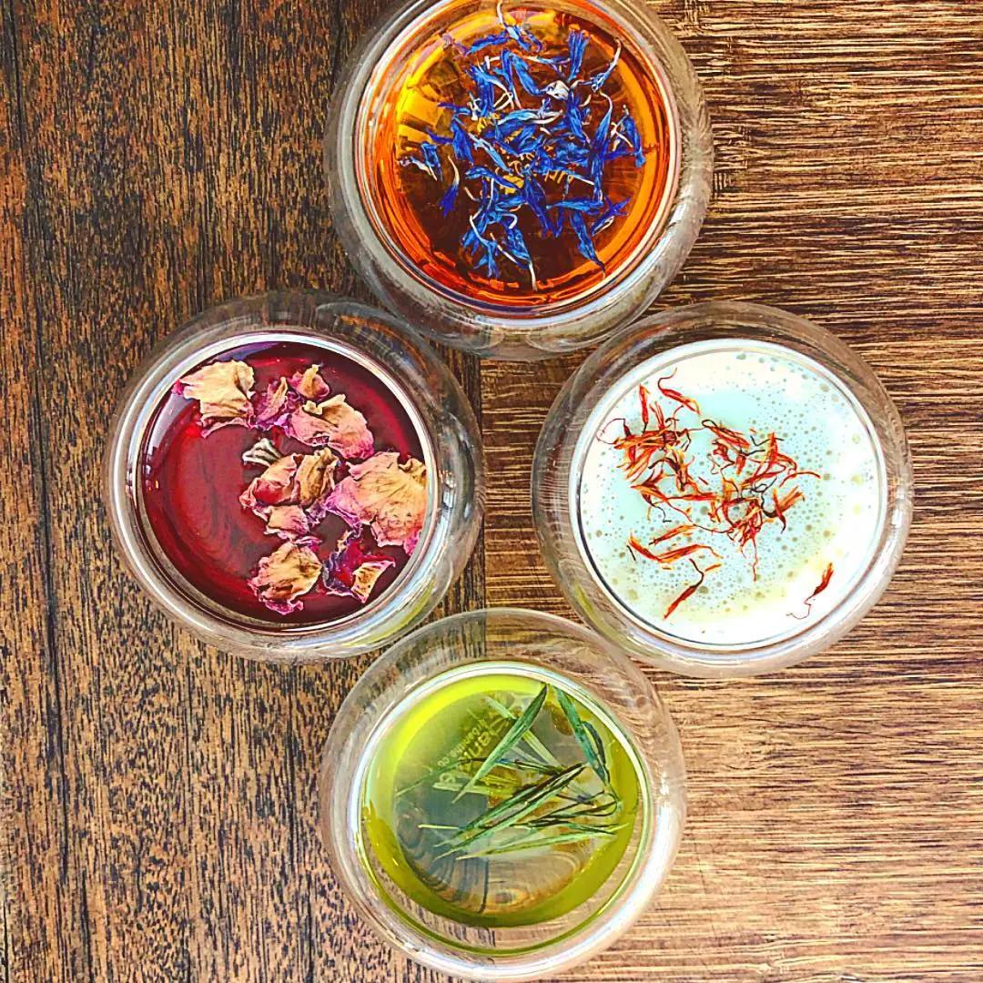 茶在雞尾酒里的應用——不止是喝,還可以看。另一位調(diào)酒師就很喜歡用茶打扮雞尾酒。