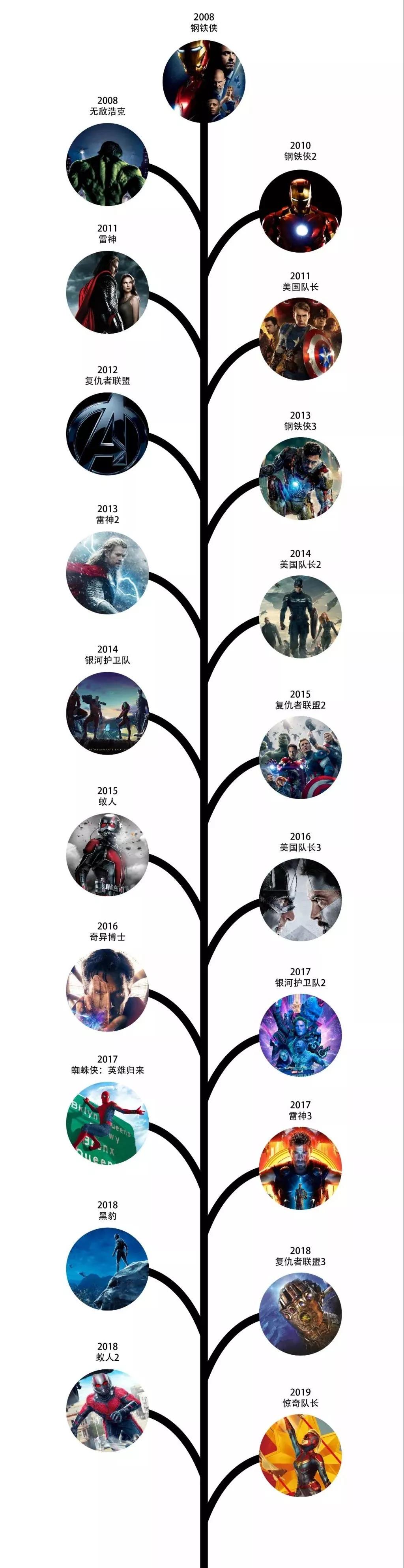 第三階段:從2016年開始,到2019年結(jié)束:美國隊長3、奇異博士、銀河護衛(wèi)隊2、蜘蛛俠、雷神3、黑豹、復(fù)仇者聯(lián)盟3、蟻人2、驚奇隊長、復(fù)仇者聯(lián)盟4。