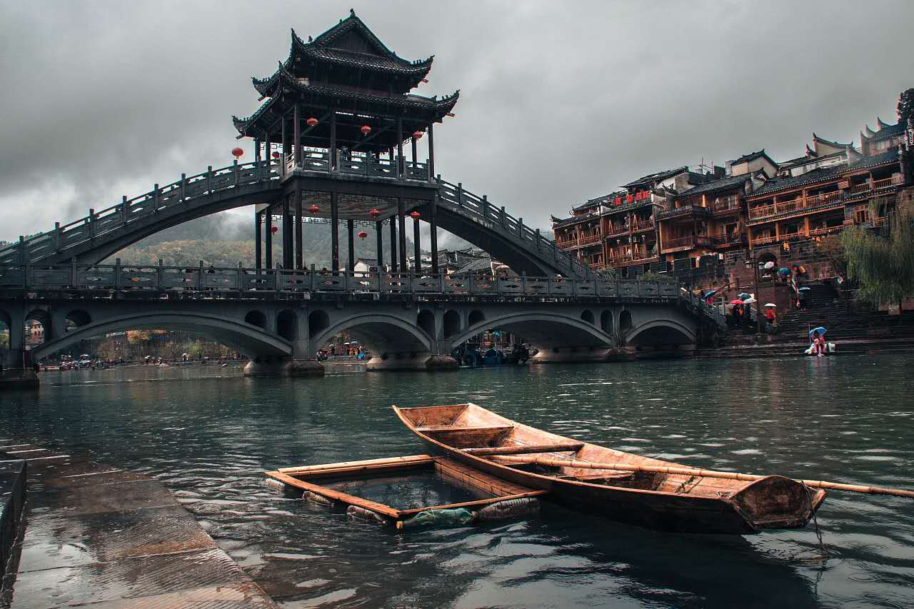 沱江,古城鳳凰的母親河,依城墻緩緩流淌,哺育著世世代代的古城兒女。坐上烏篷船,聽著艄公的號(hào)子,看著兩岸已有百年歷史的土家吊腳樓,別有一番韻味。順?biāo)拢┻^虹橋,一幅江南水鄉(xiāng)的畫卷便展現(xiàn)于眼前,遠(yuǎn)離塵世的感覺悠然而生。
