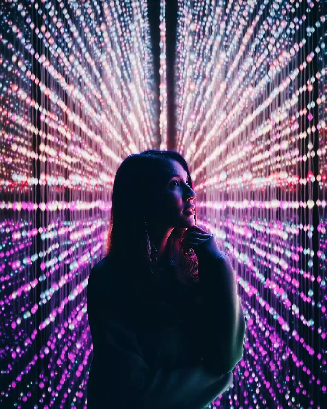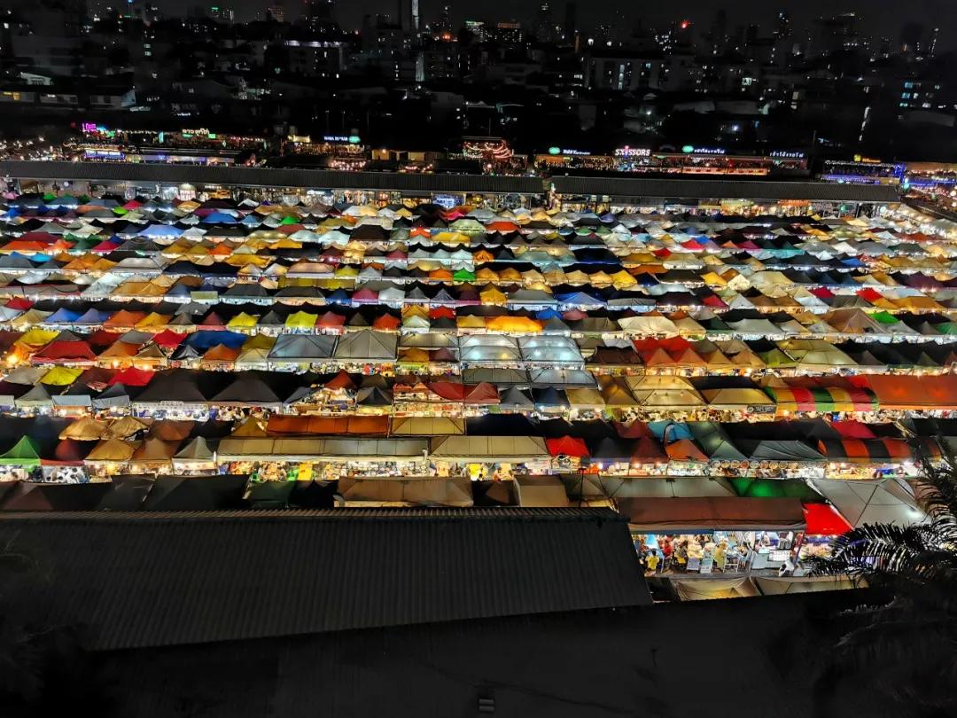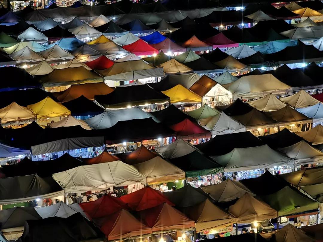 不同色彩的帳篷在燈光下變得絢麗多彩,畫面內(nèi)容豐富
