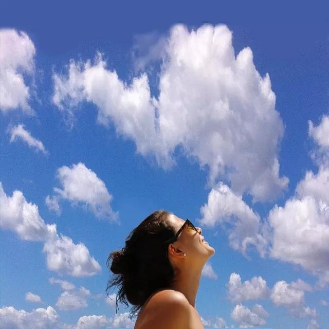 人物主體抬頭仰望蔚藍(lán)的天空,采用近景拍攝的方式,將被拍攝對象沐浴在陽光下的愉悅情緒記錄下來。
