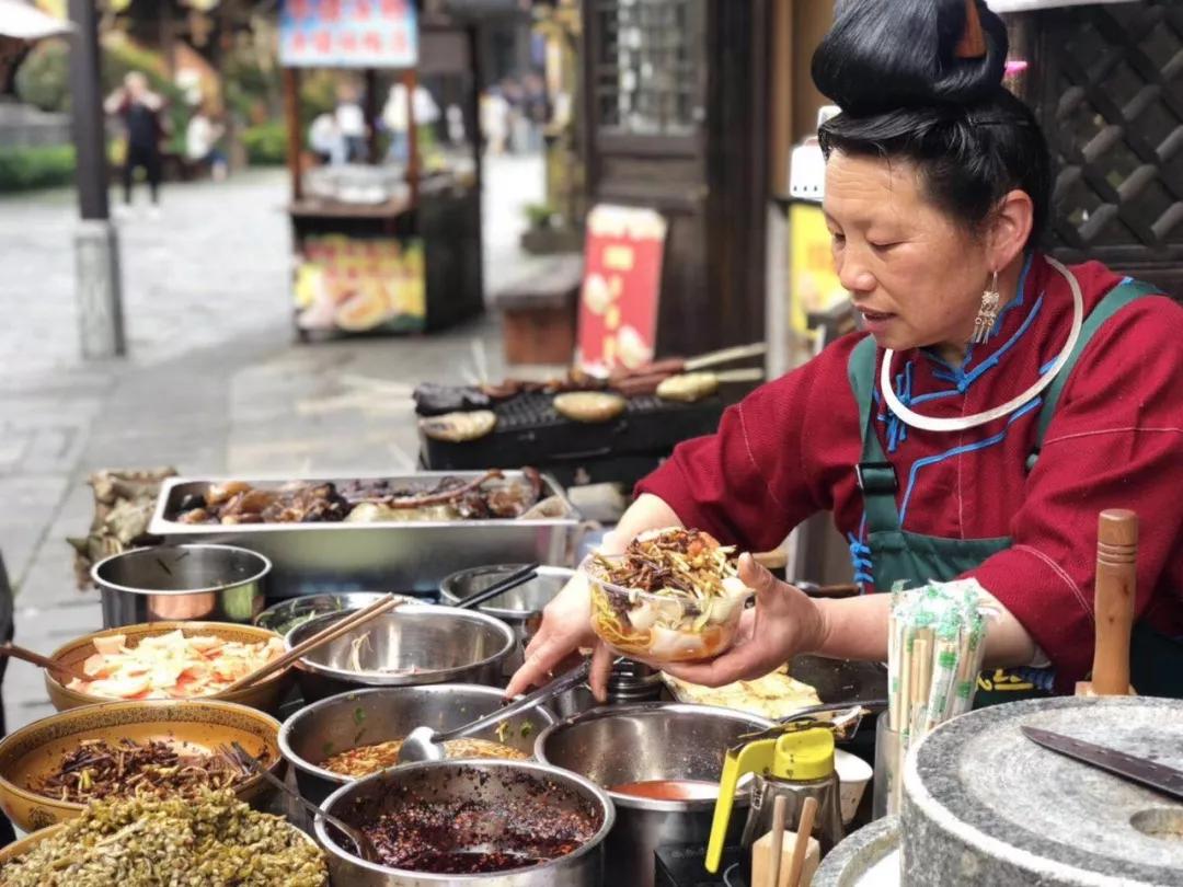 小鎮(zhèn)的街道上,早早的就擺起了長長的桌子,苗家同胞忙碌的準(zhǔn)備著餐食,旅行的人們也安耐不住。