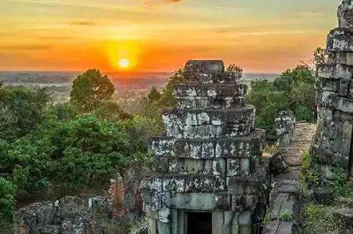 巴肯山臺(tái)基為金字塔式的五層,各層有塔,層層而上,極為壯觀。在山頂可以俯瞰吳哥窟全景、吳哥古都和周圍的景點(diǎn),是看日出和日落的最佳地點(diǎn)。