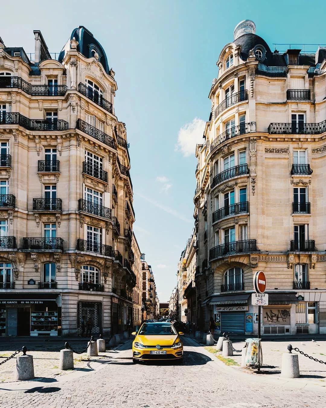 如果是兩個(gè)相鄰的建筑物,可以將相機(jī)的位置放在兩者中間,利用道路來做引導(dǎo)線,會(huì)讓畫面有一個(gè)延伸感。
