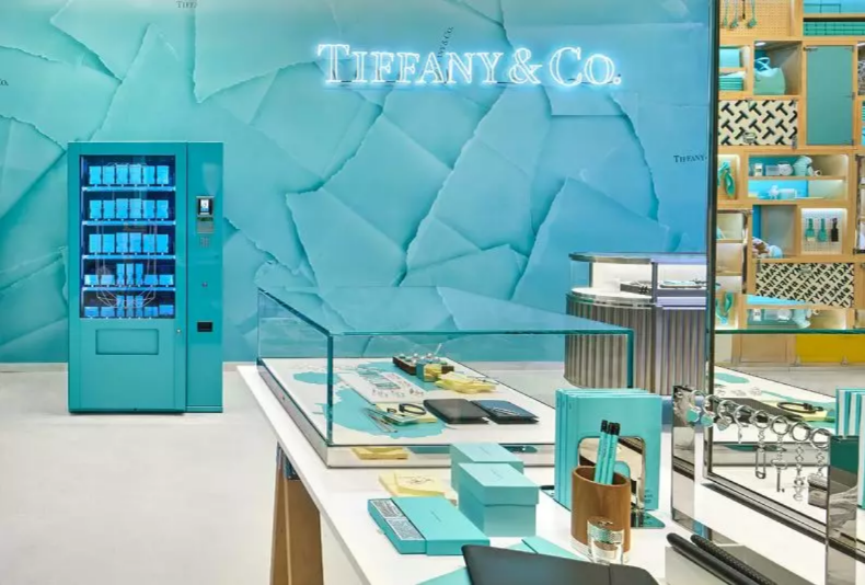 與此同時(shí),店內(nèi)還有一臺(tái)自動(dòng)售賣機(jī),專門售賣Tiffany最新香水、現(xiàn)場雕刻的珠寶和皮革壓花產(chǎn)品,顧客可在屏幕上設(shè)計(jì)元素,最后融入到吊墜和其它產(chǎn)品上。