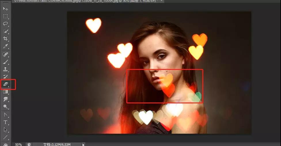 如果出現(xiàn)光斑遮擋到了人像的面部時(shí),可以選中光斑圖片,使用橡皮擦進(jìn)行擦除。