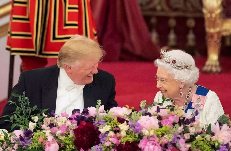 英女王在白金漢宮宴請(qǐng)首次到訪英國(guó)的美國(guó)總統(tǒng)唐納德?特朗普。