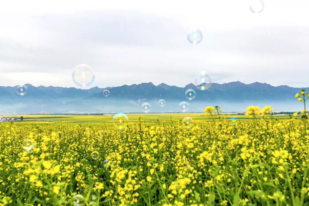 大片大片黃燦燦的油菜花鑲嵌其中