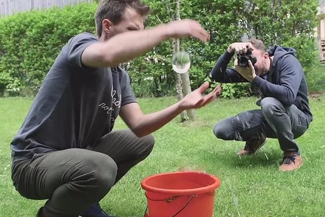 不斷調整拍攝角度和球體位置,你會發(fā)現(xiàn)球內的分界線位置也會不斷發(fā)生變化。你需要選擇一個角度,使球體倒影和現(xiàn)實中的分界線重合。