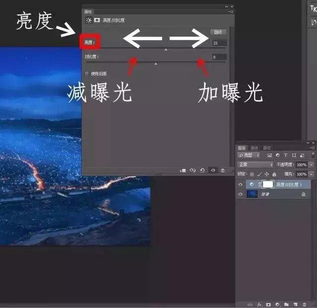 選擇“亮度/對比度”,就可以打開亮度/對比度調(diào)整界面了: