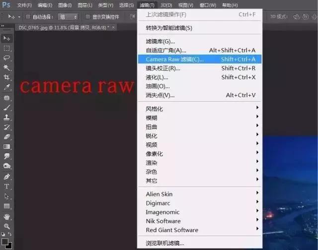 Photoshop CC 版本,就把原本只是在導(dǎo)入 raw 格式照片才會彈出來的 Camera Raw 插件變成了 jpg,tif 也可以適用的濾鏡。