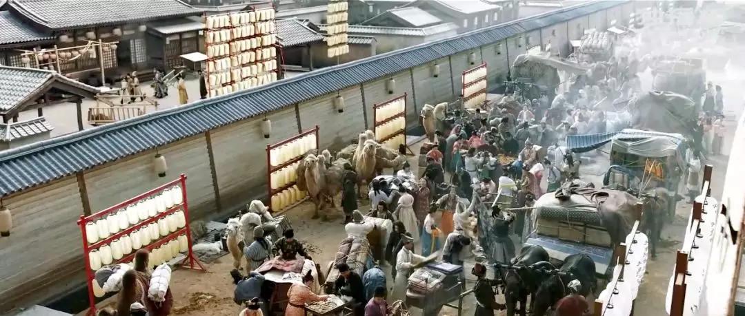 一開場(chǎng)的長(zhǎng)鏡頭就體現(xiàn)了大唐的熱鬧繁華,展現(xiàn)了萬國來朝的宏大氣象!