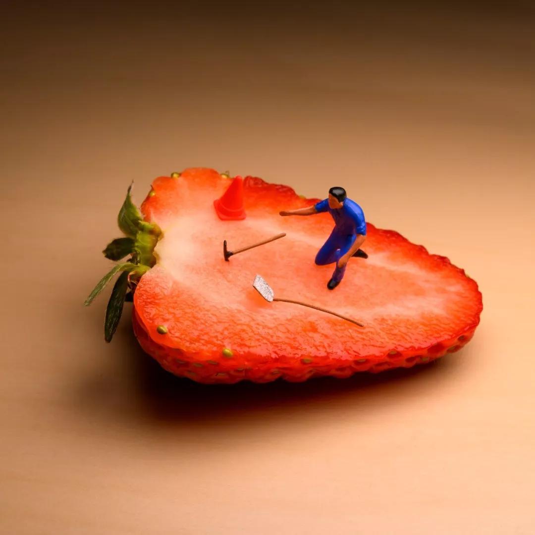 比如下面這張水果圖片,攝影師就加入了一些玩具模型,讓畫面更加有趣味,但是又不會(huì)干擾到主體。