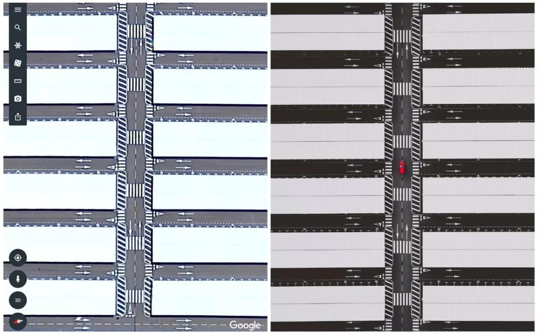 下列圖片中左圖為谷歌地球截取,右圖為實際拍攝。